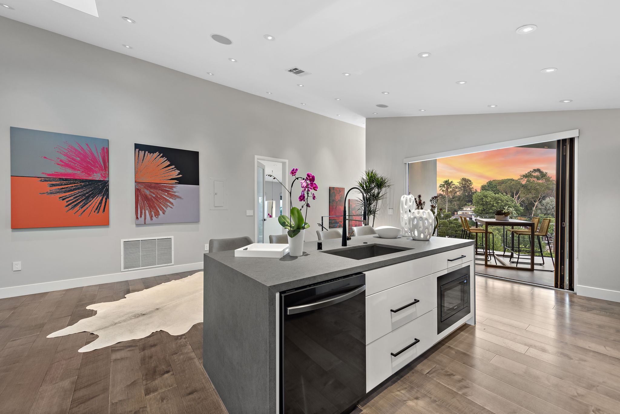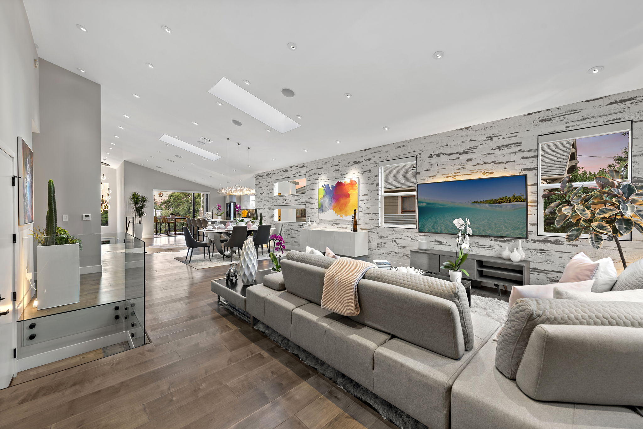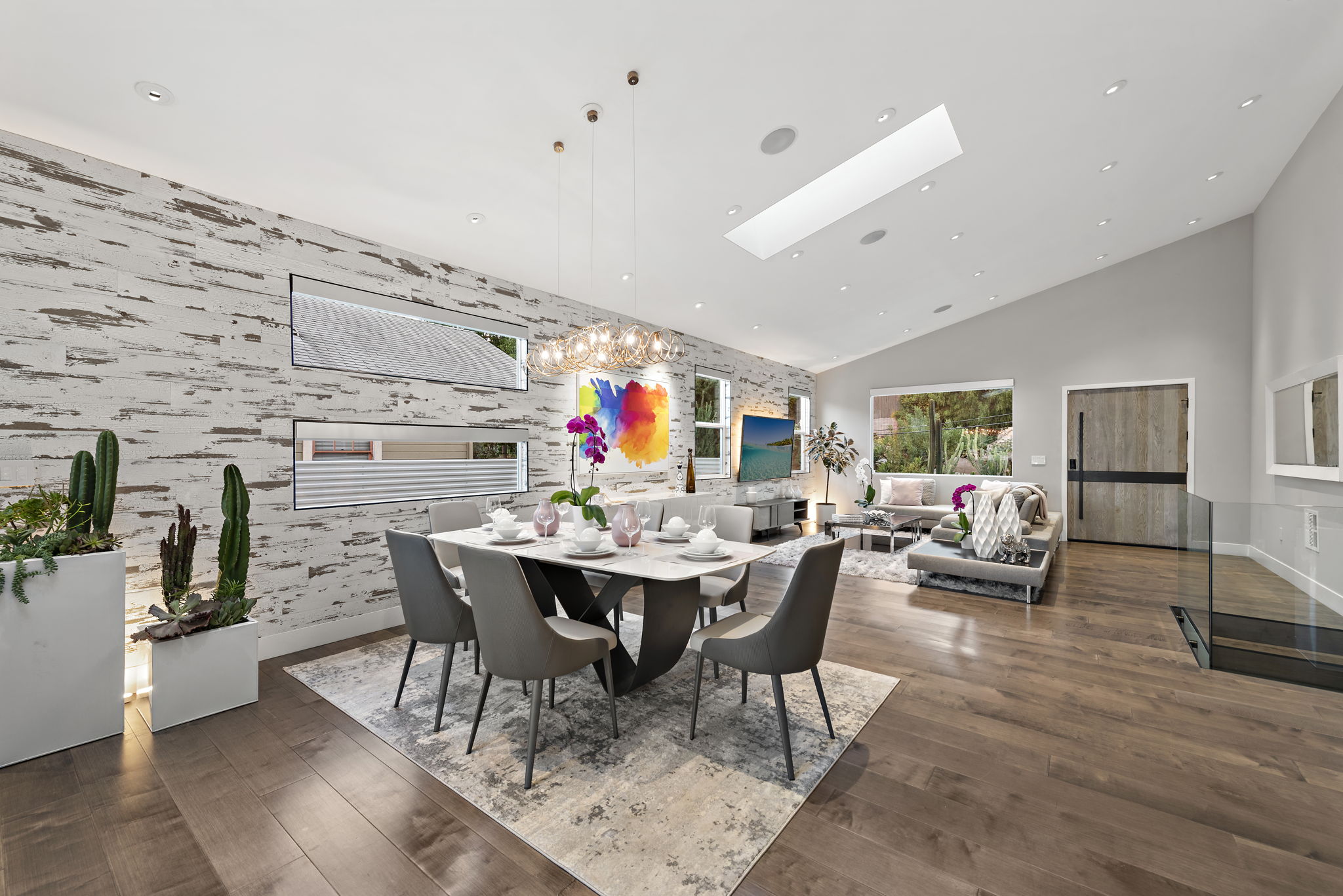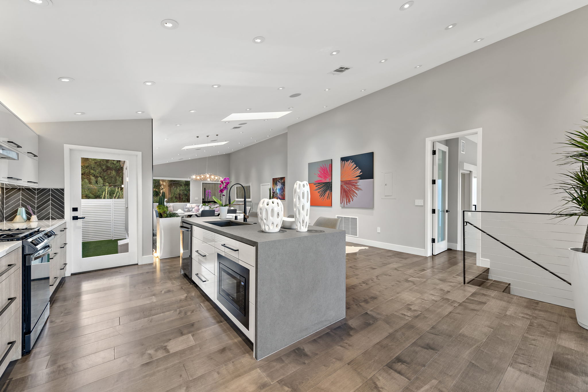 The interior of this home is a delight of design & texture, providing an open feel. Some of the features include; wood flooring throughout, soaring ceilings with skylights and soft LED lighting. Enjoy a waterfall kitchen island complete with stone counter-tops & European soft close cabinetry. An abundance of wall-space is available for your prized paintings & other works of art.