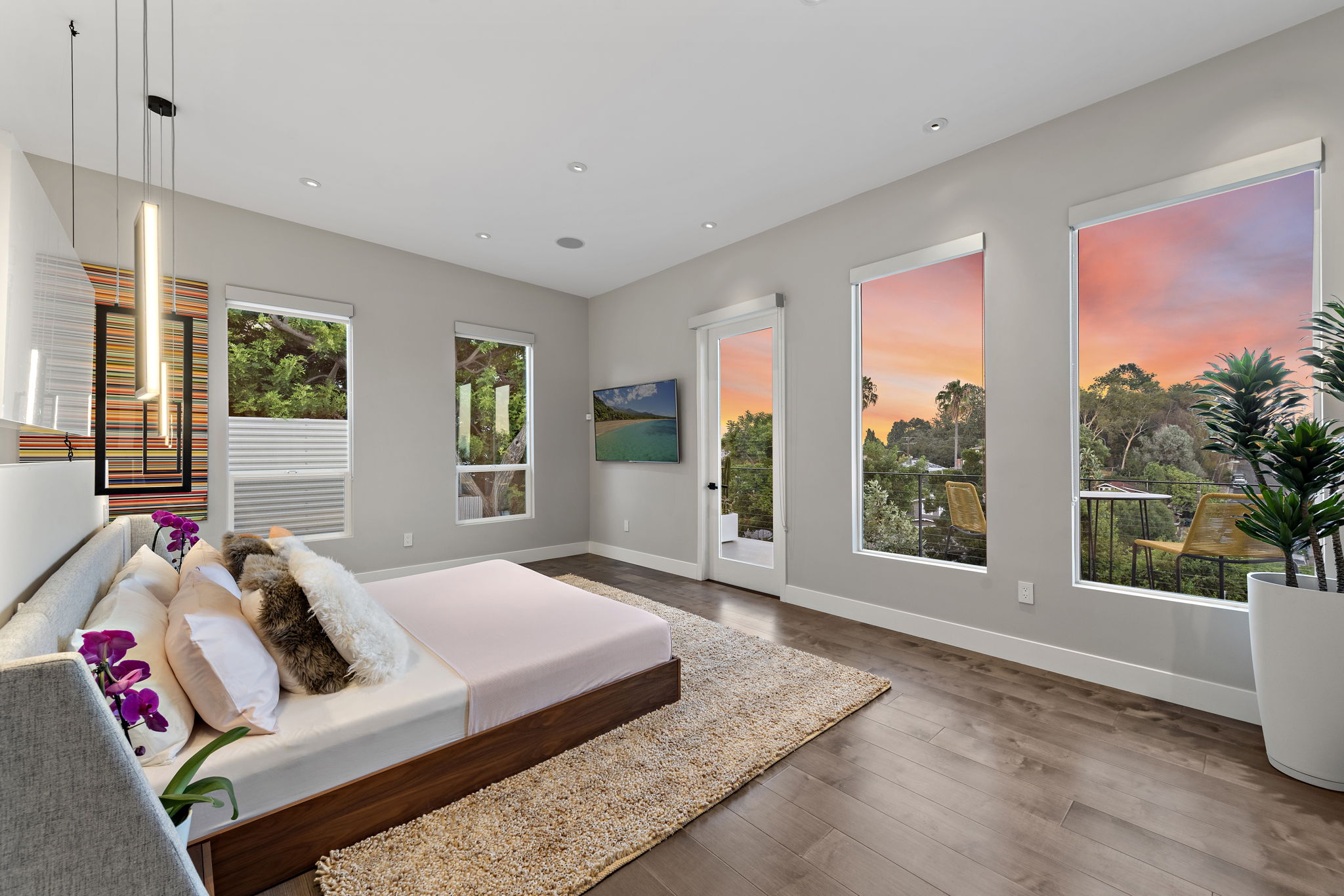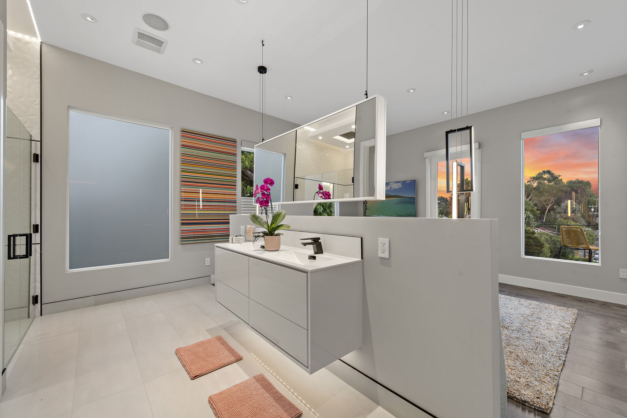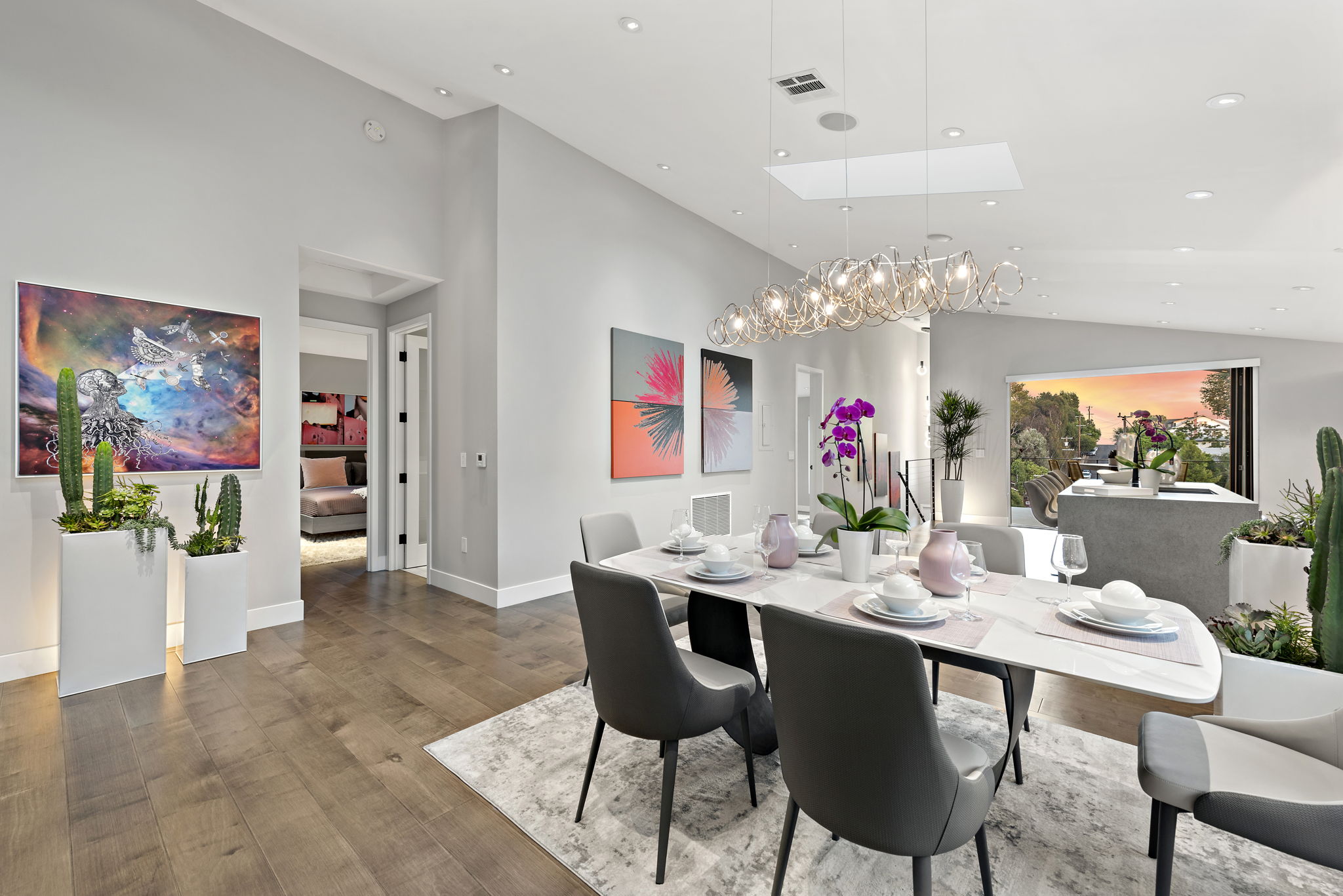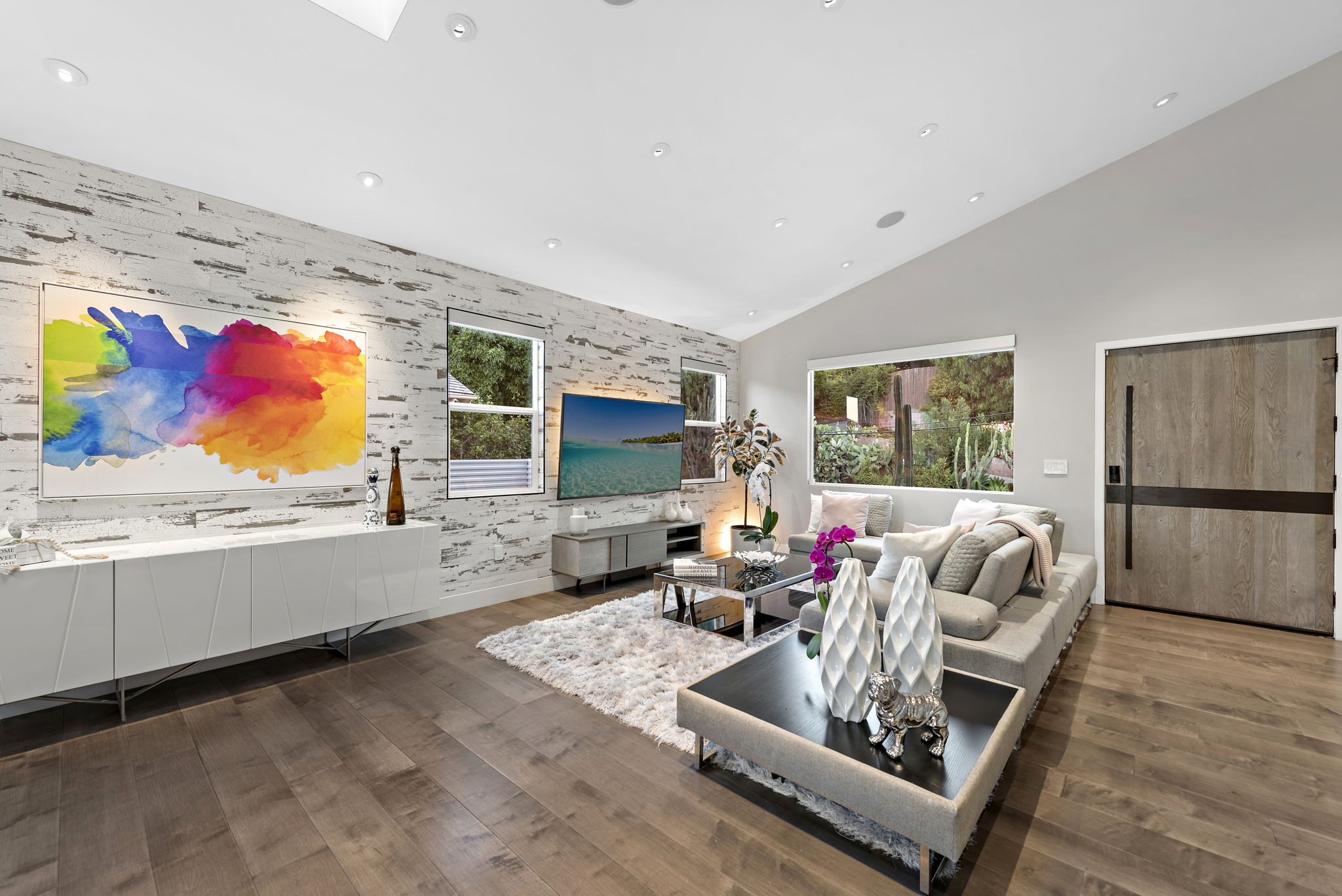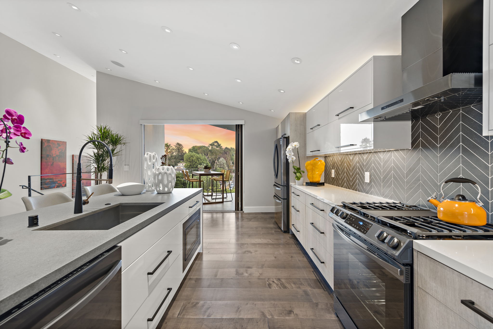 The interior of this home is a delight of design & texture, providing an open feel. Some of the features include; wood flooring throughout, soaring ceilings with skylights and soft LED lighting. Enjoy a waterfall kitchen island complete with stone counter-tops & European soft close cabinetry. An abundance of wall-space is available for your prized paintings & other works of art.