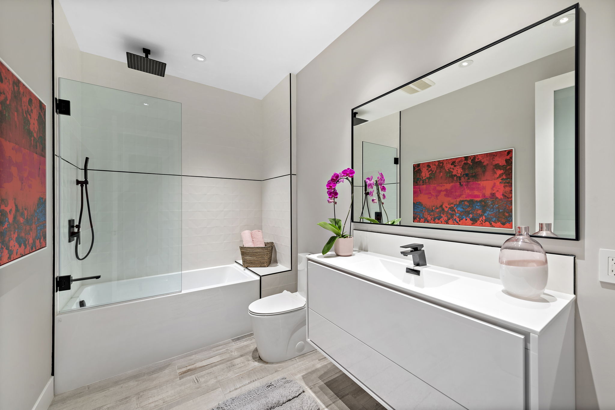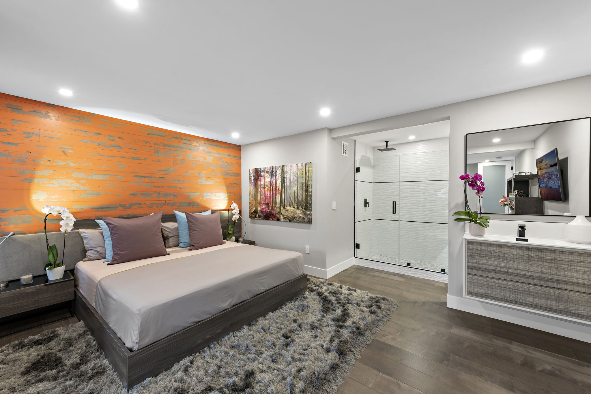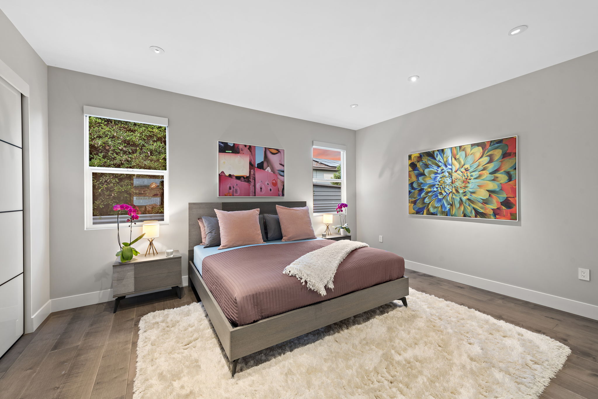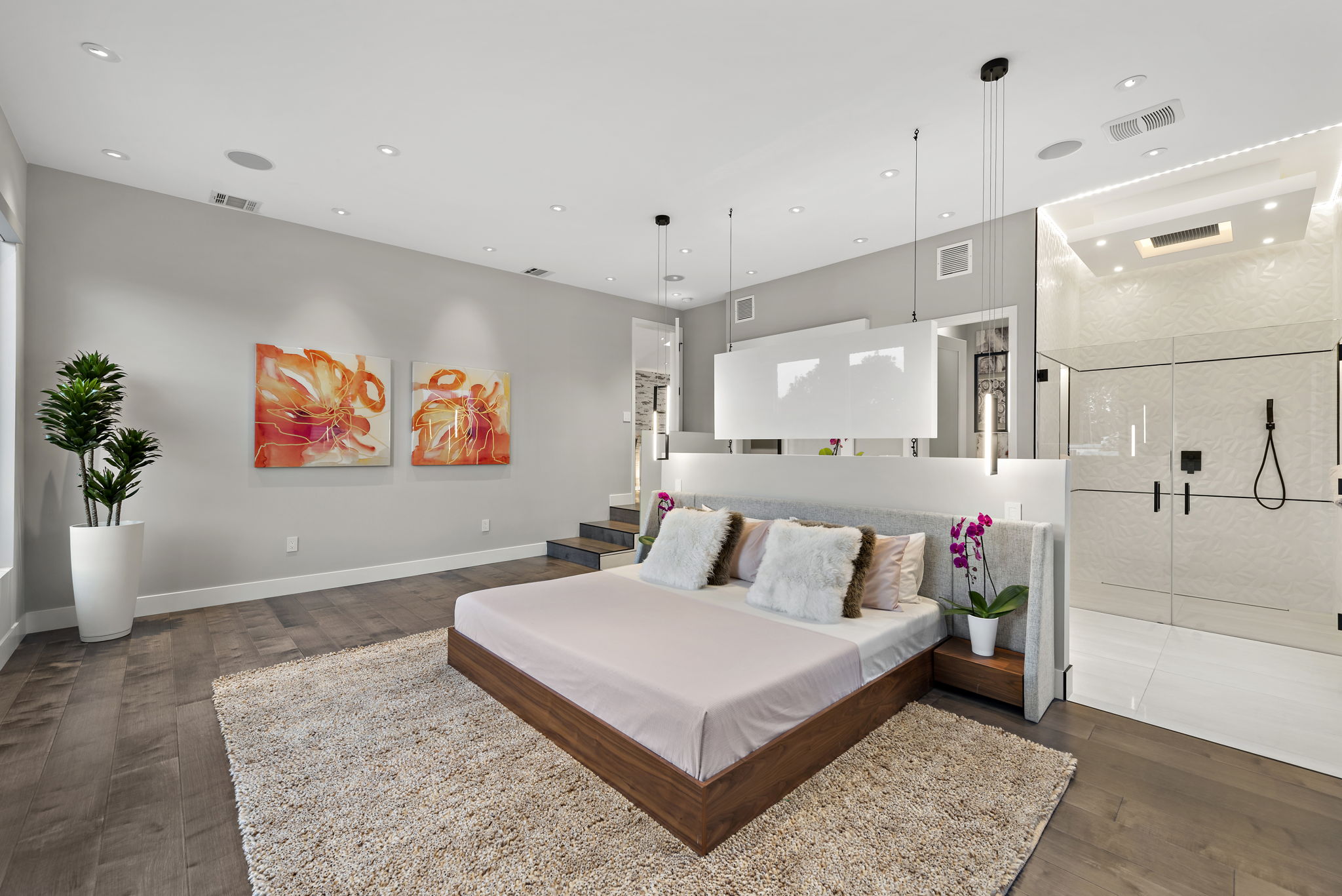 The interior of this home is a delight of design & texture, providing an open feel. Some of the features include; wood flooring throughout, soaring ceilings with skylights and soft LED lighting. Enjoy a waterfall kitchen island complete with stone counter-tops & European soft close cabinetry. An abundance of wall-space is available for your prized paintings & other works of art.