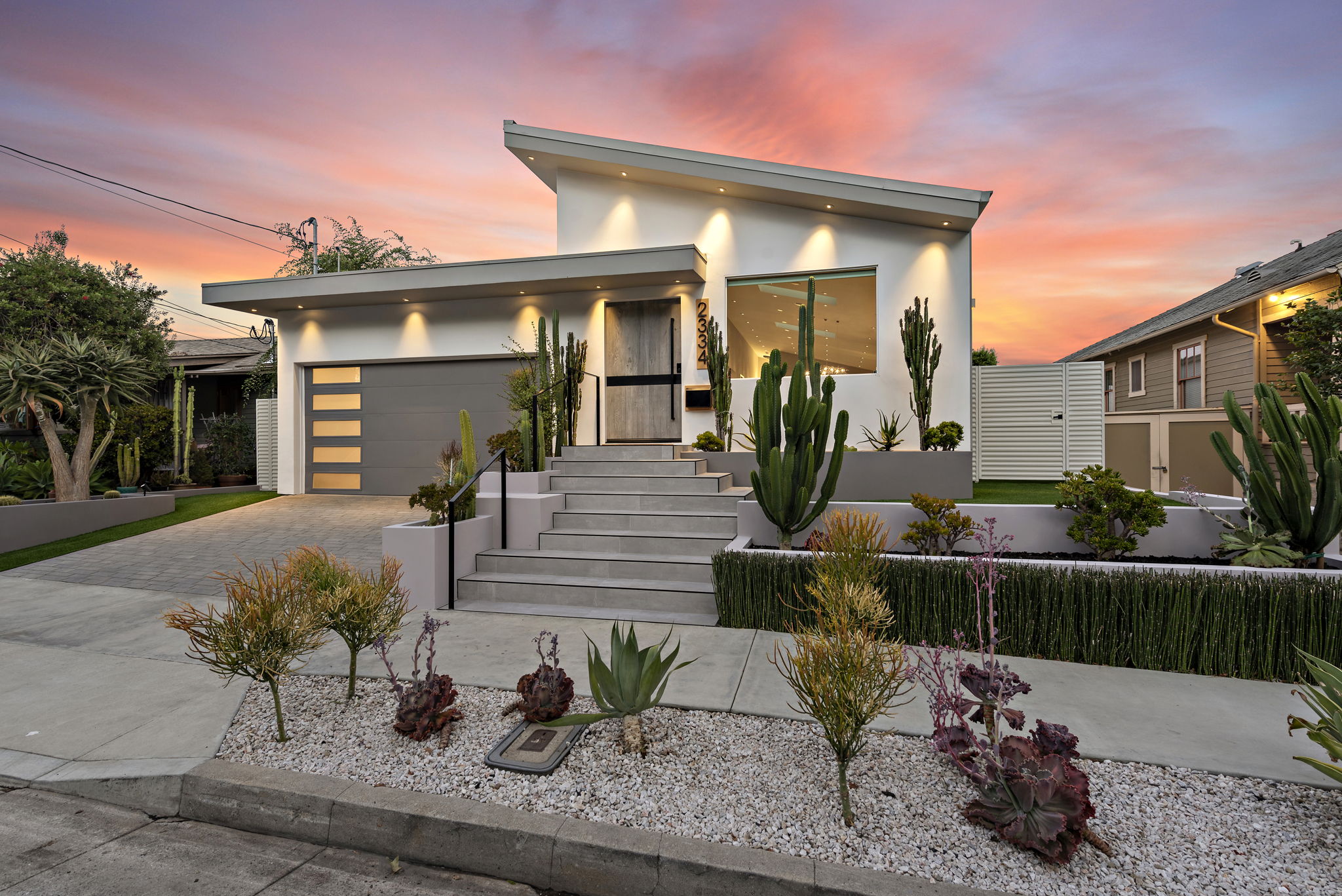 Stunning modern hilltop residence in the North Echo Park Neighborhood of Elysian Heights with panoramic views and city lights.